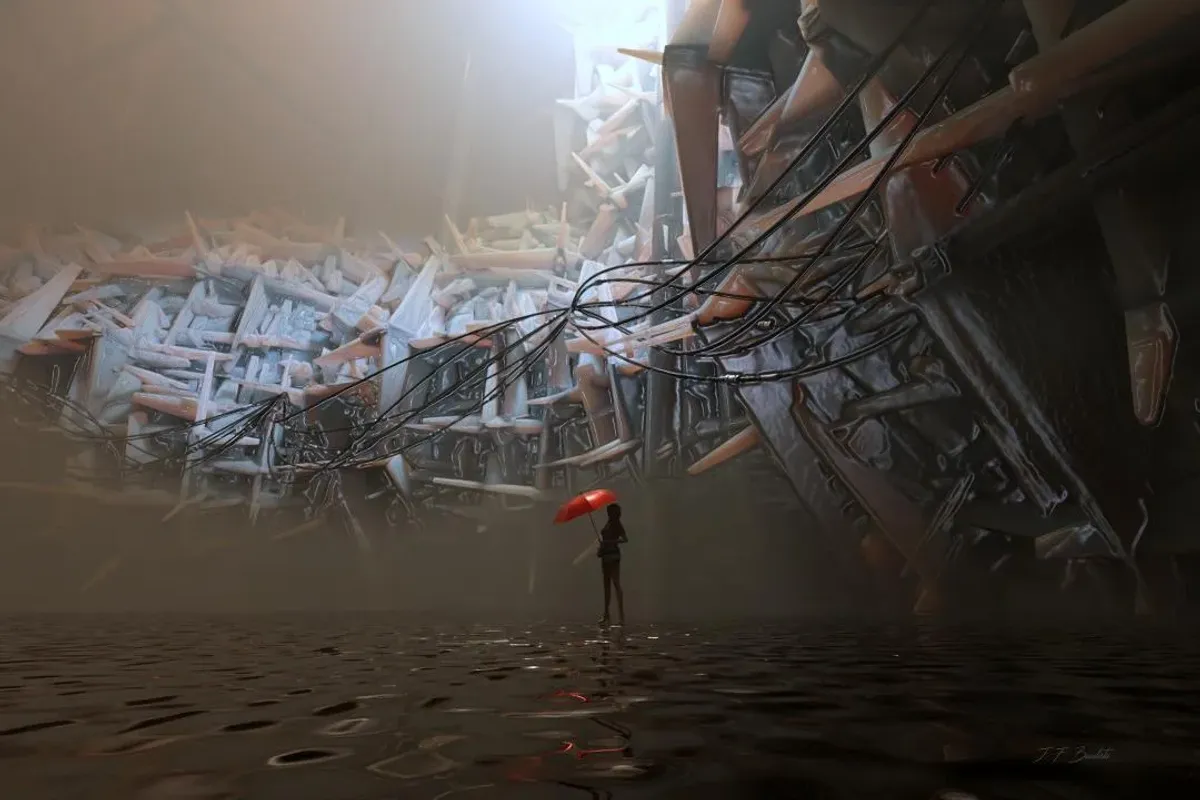 solitudefuturisticdystopianumbrellareflectiondebrisabstract architectureRealismContemporary / ModernDark / DramaticStorytelling / NarrativePortrait / PeopleAbstract / ConceptualSurreal / ImaginativeConflict / Sacrifice