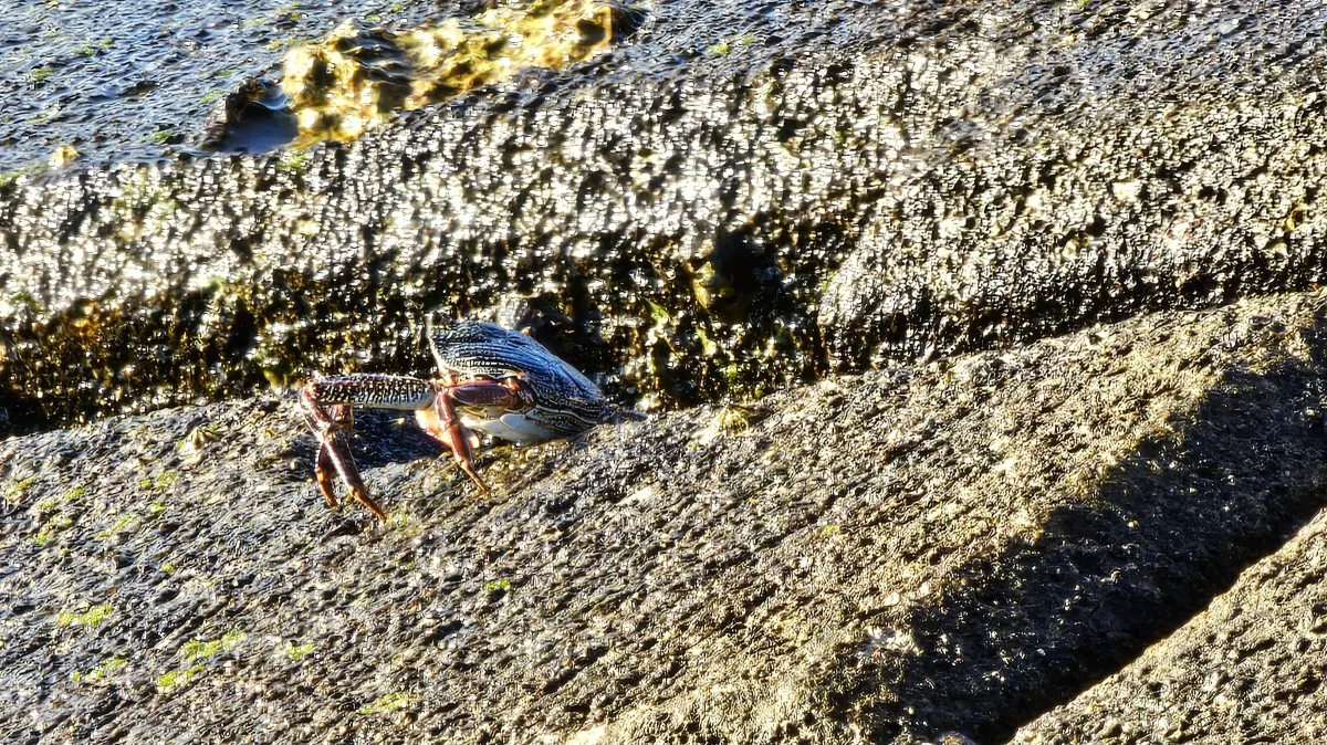 crabrocky shoreseashoremarine lifesunlightwet rocksintertidal zoneRealismLight / SereneLandscape / NatureSeascape / WaterAnimals / Wildlife