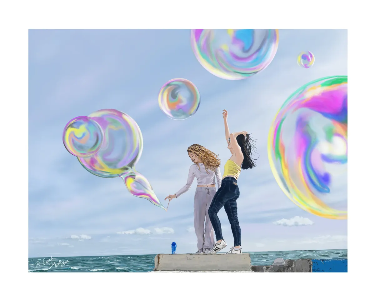 womenbubblesseasideoceaniridescentplayfuldigital artRealismContemporary / ModernLight / SereneInspirational / UpliftingPortrait / PeopleSeascape / WaterSurreal / Imaginative