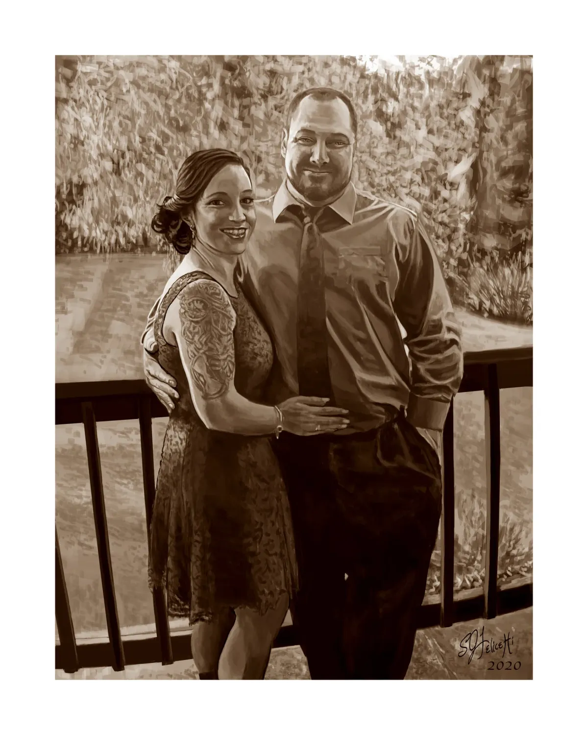 coupleportraitsepiadigital paintingsmilingoutdoorrelationshipRealismContemporary / ModernStorytelling / NarrativeLight / SerenePortrait / PeopleLandscape / Nature