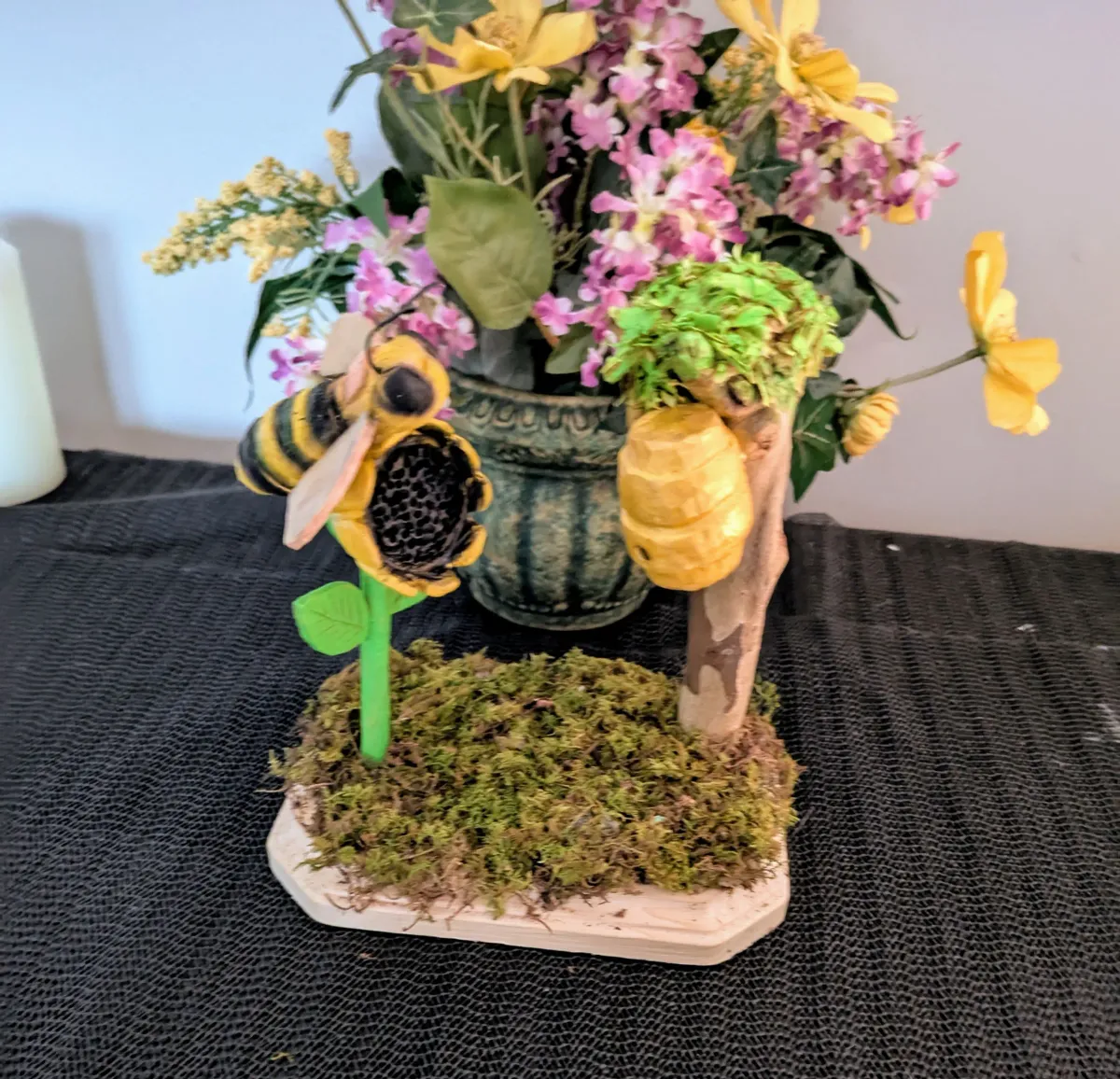 bumblebeebeehiveflowermossdecorationcraftnature sceneRealismStorytelling / NarrativeLight / SereneLandscape / NatureAnimals / WildlifeStill Life / Objects