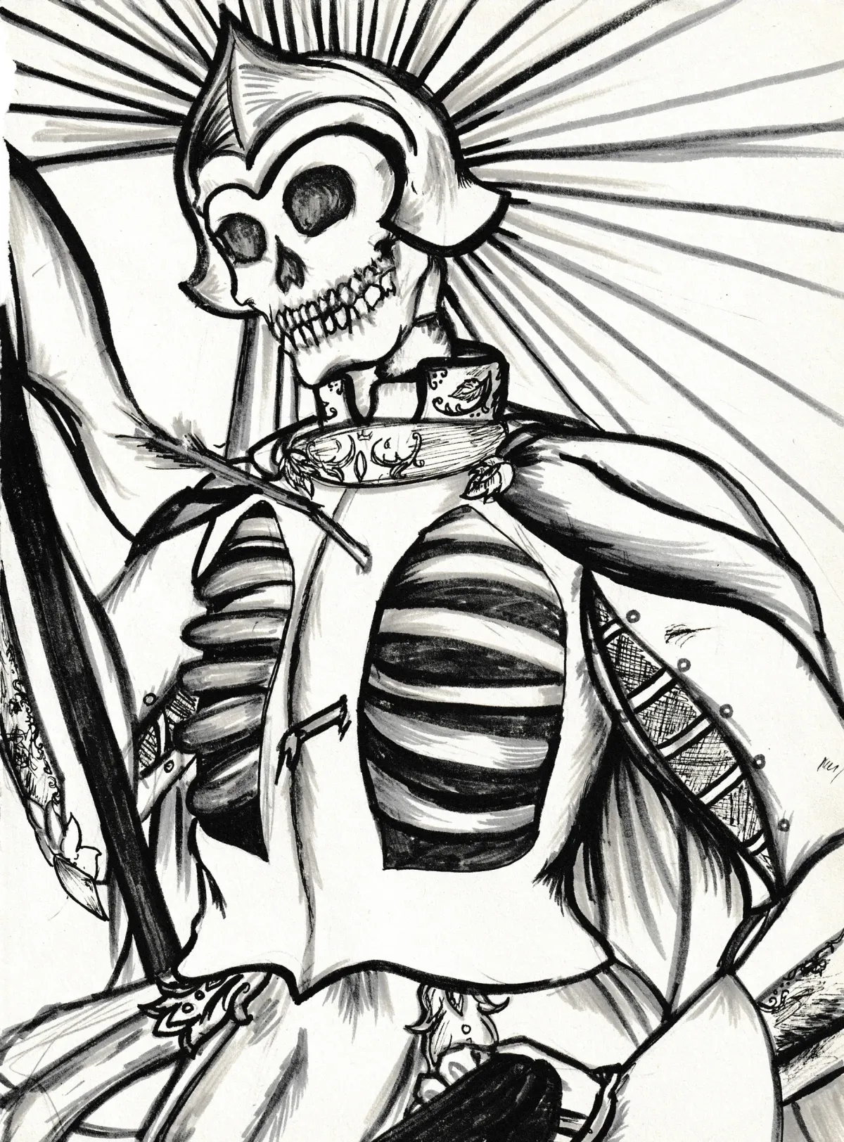 skeletonarmorgothicdrawingblack and whitewarriormacabreBold / GraphicDark / DramaticExpressionism / EmotionalStorytelling / NarrativeSpiritual / SymbolicConflict / Sacrifice