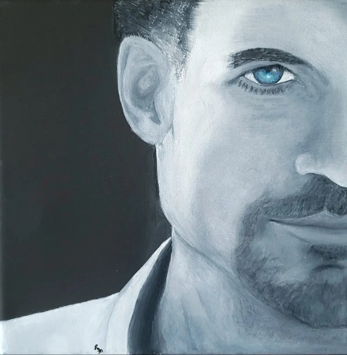 PortraitManGrayscaleBlue EyePaintingRealismMonochromaticRealismContemporary / ModernBold / GraphicDark / DramaticPortrait / People