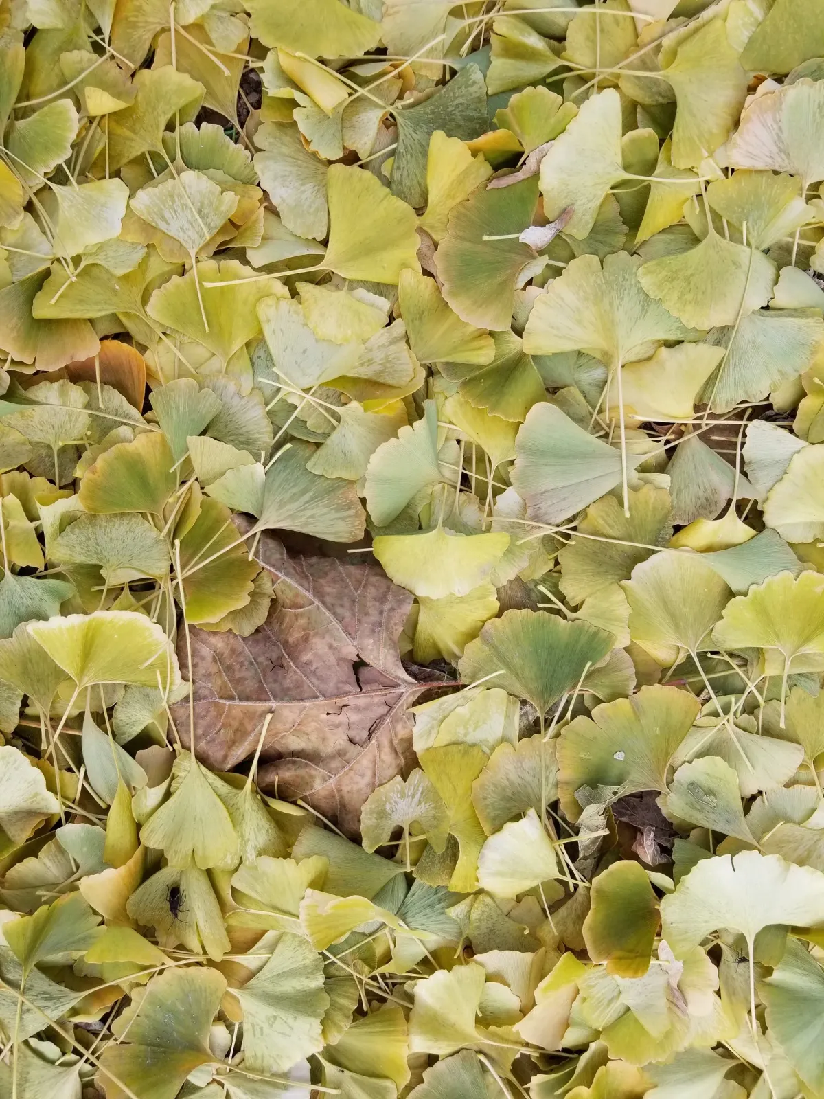 Ginkgo leavesautumn foliagenatureyellowgreenfallen leavesbrown leafRealismLight / SereneLandscape / Nature