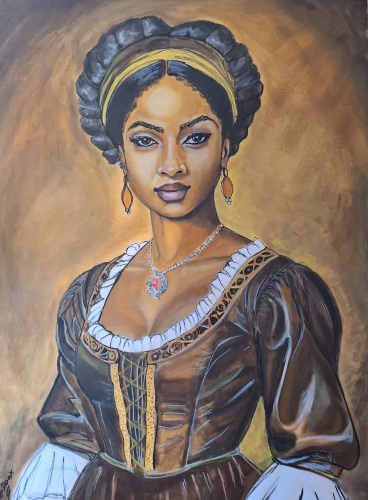 portraitwomanhistorical fashionjewelryperiod dressdark skinregalRealismStorytelling / NarrativePortrait / PeopleHistorical / Cultural