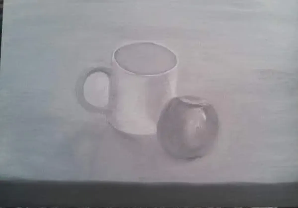 still lifemonochromaticgrayscalemugapplepaintingvalue studyRealismTherapeutic / ReflectiveStill Life / Objects