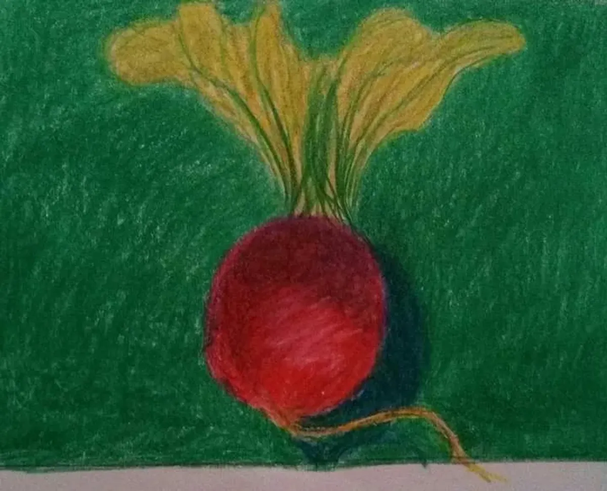radishvegetablestill lifedrawingredgreencrayonRealismBold / GraphicStill Life / Objects