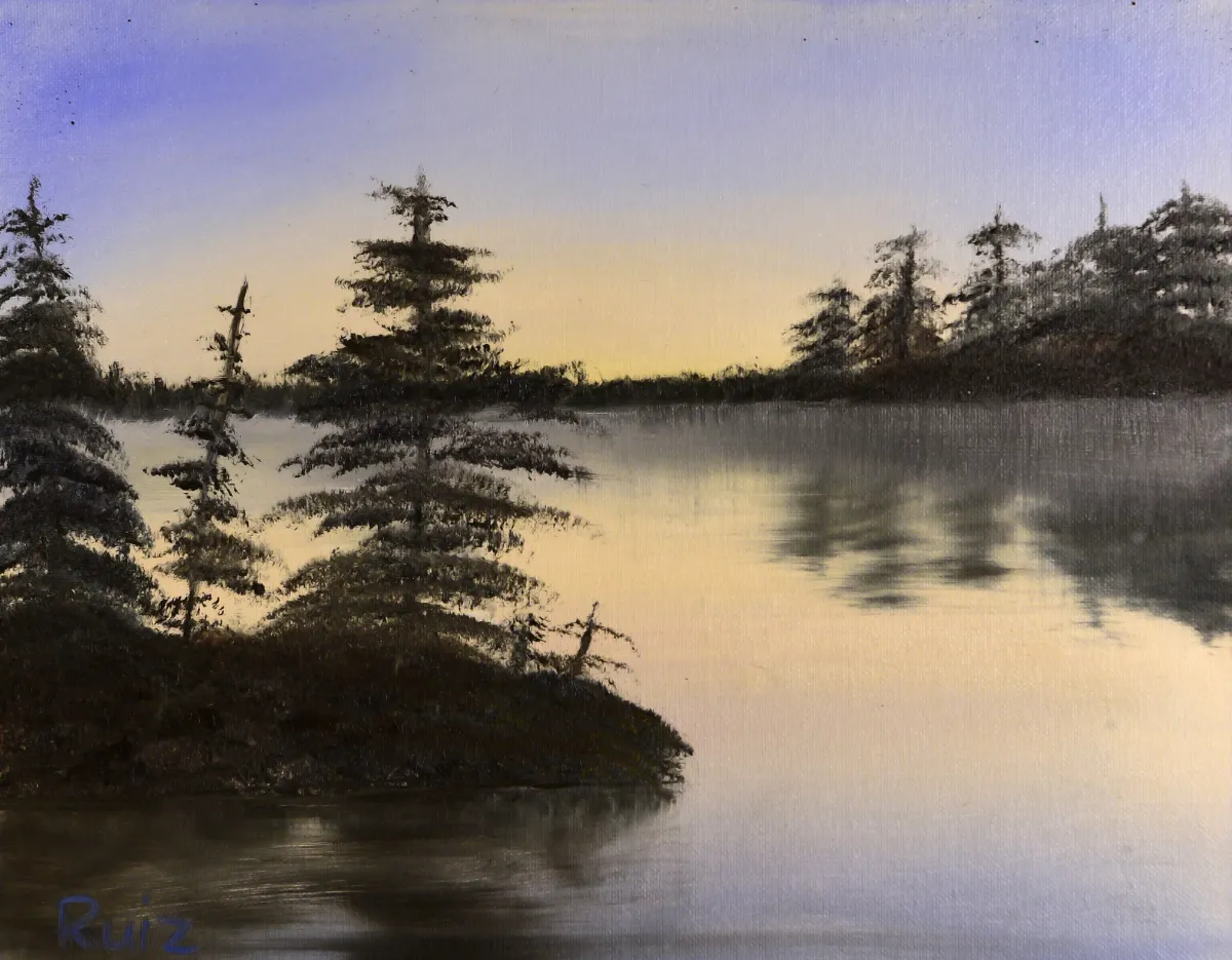 LakeLandscapeTreesReflectionDuskDawnPaintingRealismLight / SereneTherapeutic / ReflectiveLandscape / NatureSeascape / Water