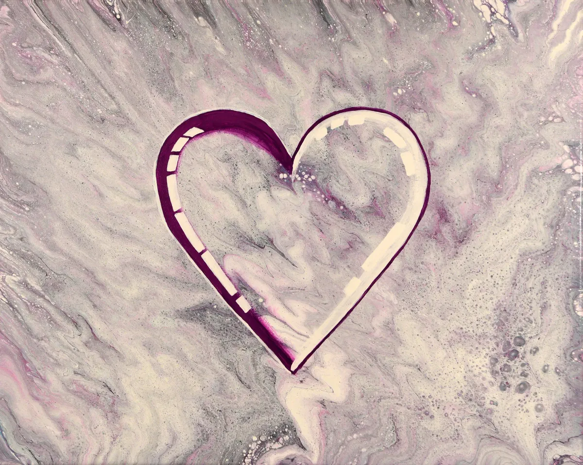 AbstractFluid artHeartPurpleGrayAcrylic pourContemporaryAbstractContemporary / ModernExpressionism / EmotionalLight / SereneInspirational / UpliftingAbstract / ConceptualSpiritual / SymbolicHope / Healing / Resilience