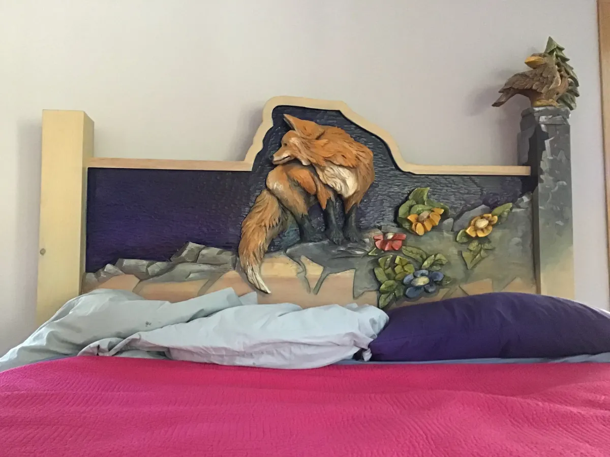 headboardwood carvingfoxeagleflowersbedroom decorfolk artRealismStorytelling / NarrativeBold / GraphicAnimals / WildlifeLandscape / NatureHistorical / Cultural