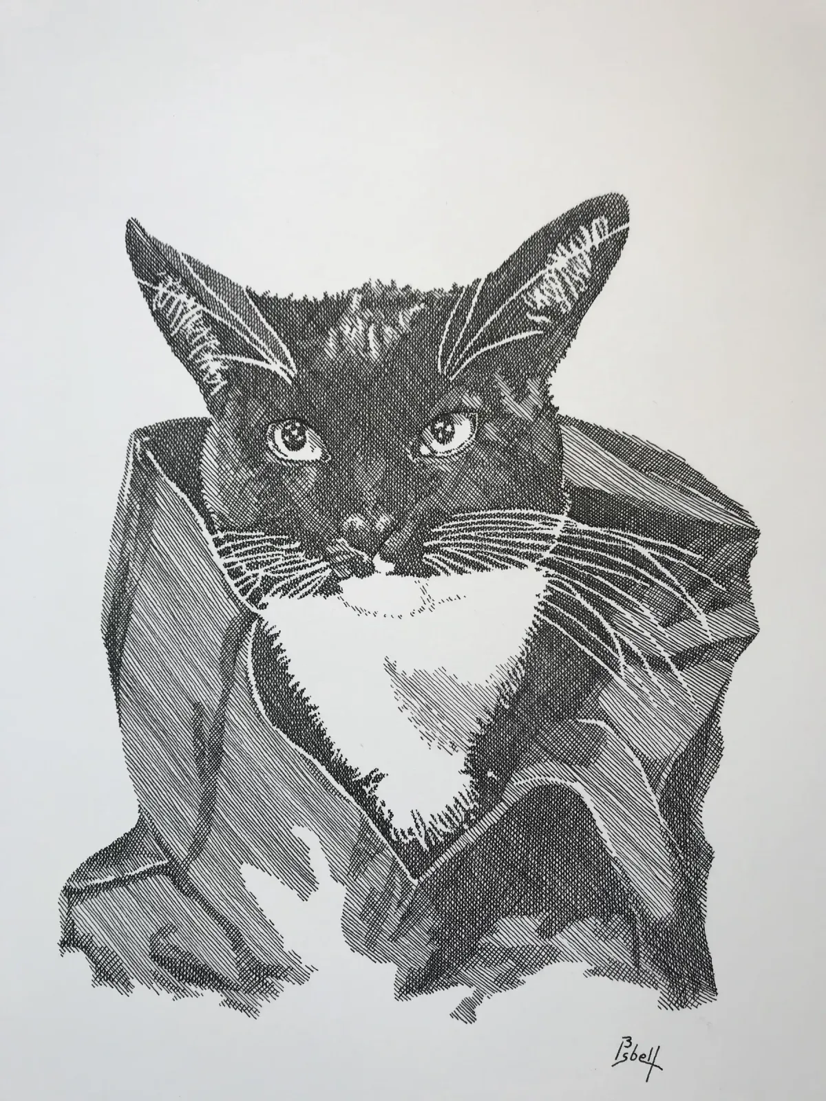 cattuxedo catpen and inkcross-hatchinganimal portraitblack and whitemonochromeRealismBold / GraphicDark / DramaticContemporary / ModernAnimals / WildlifePortrait / People
