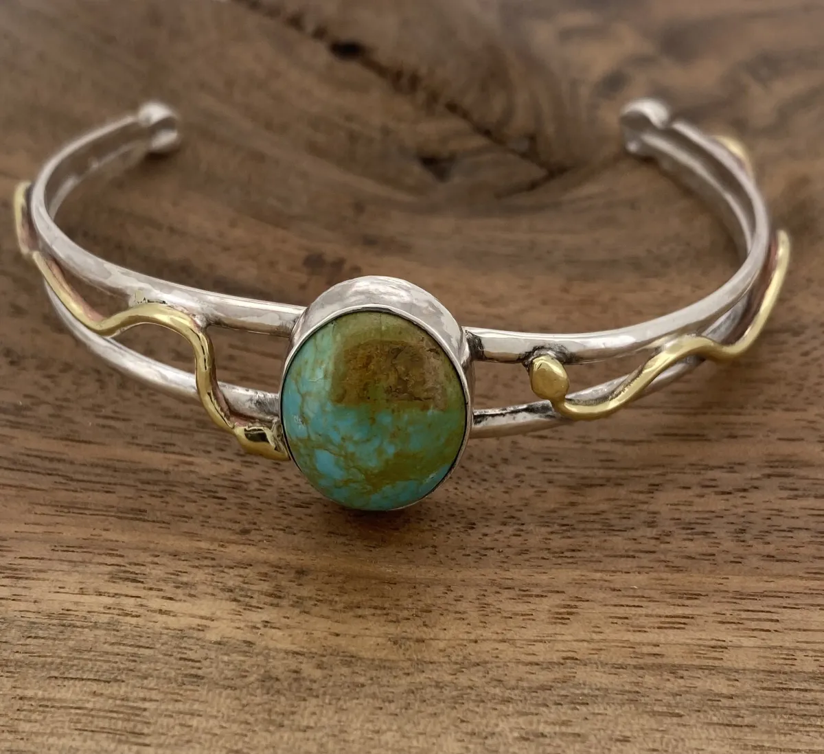 Sterling Silver, Brass and Turquoise Snake Cuff Bracelet