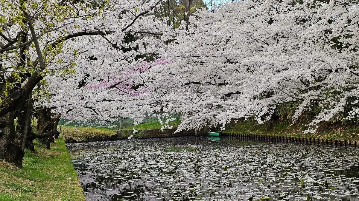 cherry blossomssakuraspringpondnatureJapanlily padsboatRealismLight / SereneInspirational / UpliftingLandscape / NatureHistorical / CulturalHope / Healing / Resilience