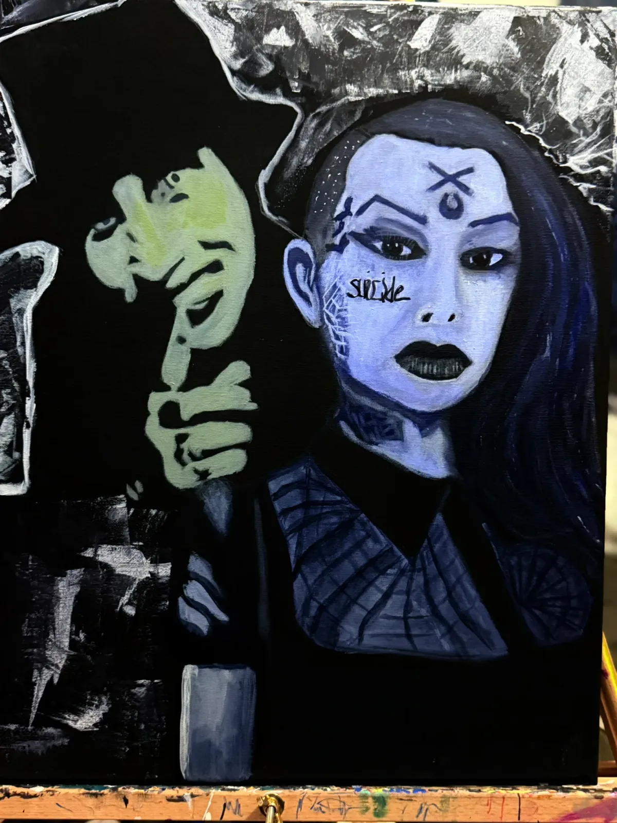 portraitdark artstylizedcontemporaryface tattoosspectral figuremoodypsychologicalContemporary / ModernBold / GraphicDark / DramaticExpressionism / EmotionalStorytelling / NarrativePortrait / PeopleSpiritual / SymbolicConflict / SacrificeAbstract / Conceptual