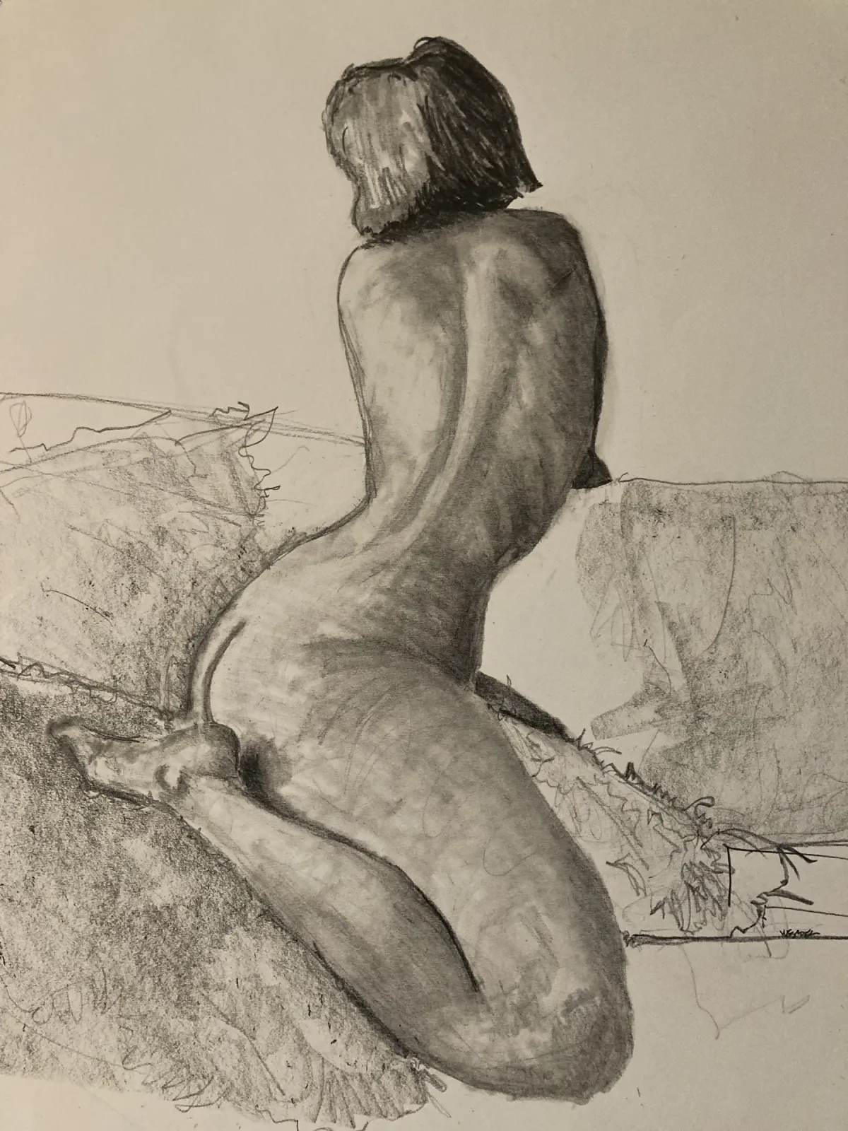 charcoal drawingnude figurehuman anatomyartistic nudefigure studyRealismDark / DramaticTherapeutic / ReflectivePortrait / People