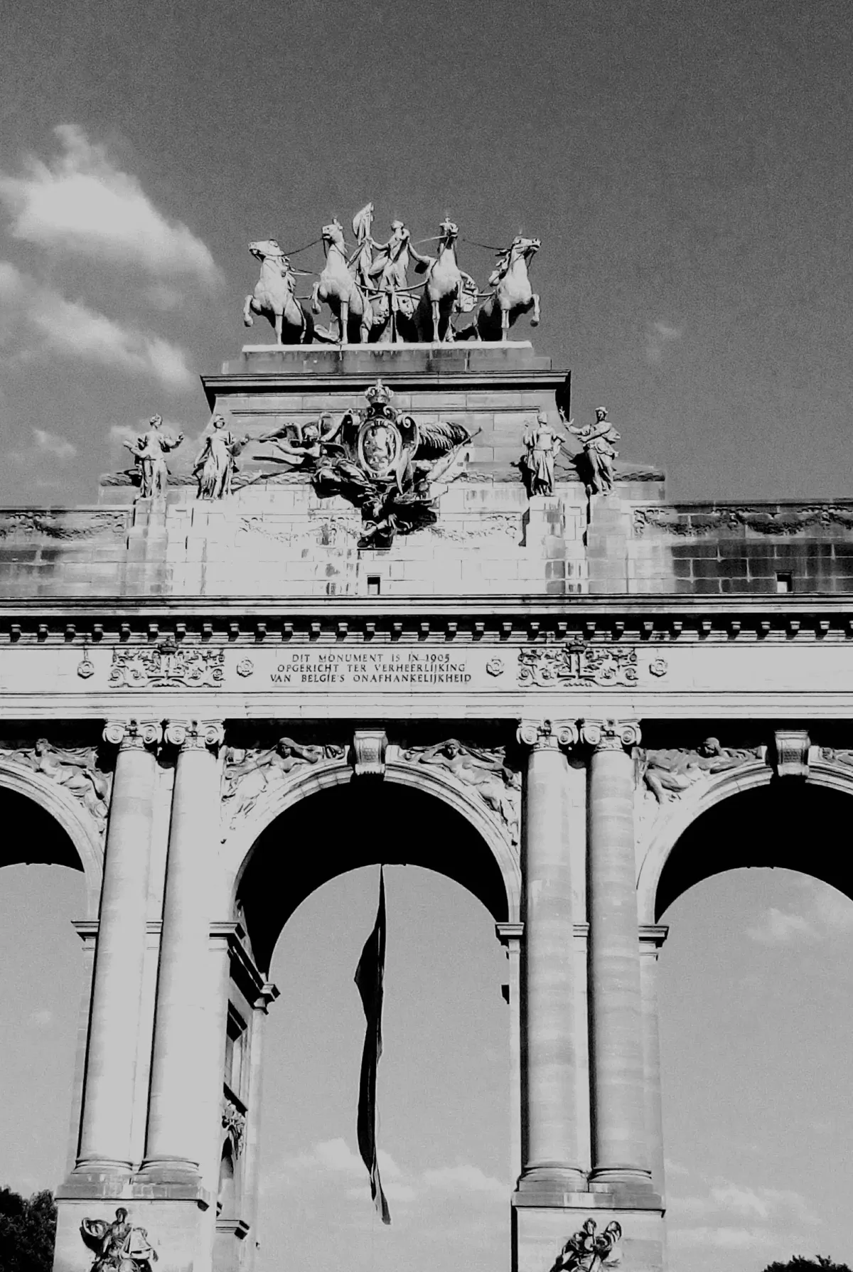 Triumphal ArchQuadrigaSculptureMonumentArchitectureBlack and whiteHistoricalRealismDark / DramaticStorytelling / NarrativeCity / ArchitectureHistorical / Cultural