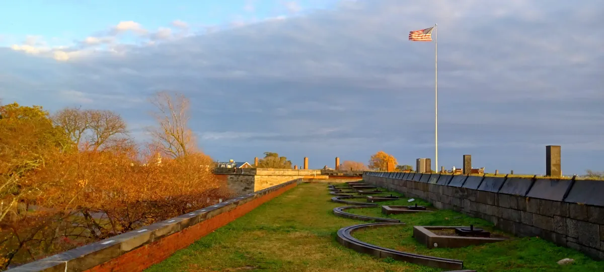 fortresshistoric siteAmerican flagautumnmilitaryarchitecturelandscaperampartRealismStorytelling / NarrativePatriotic / Military / FreedomLandscape / NatureCity / ArchitectureHistorical / Cultural