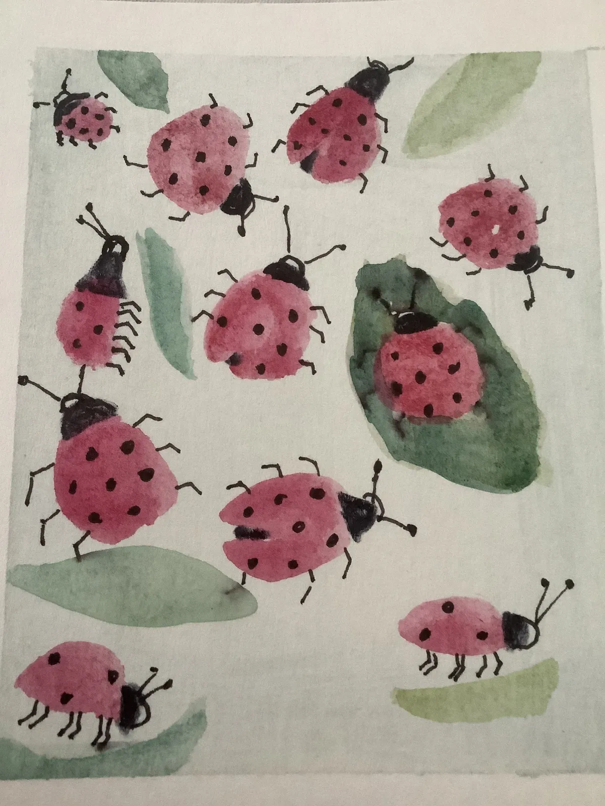 ladybugswatercolorinsectspinkleavesnaturecuteRealismLight / SereneContemporary / ModernAnimals / WildlifeLandscape / Nature