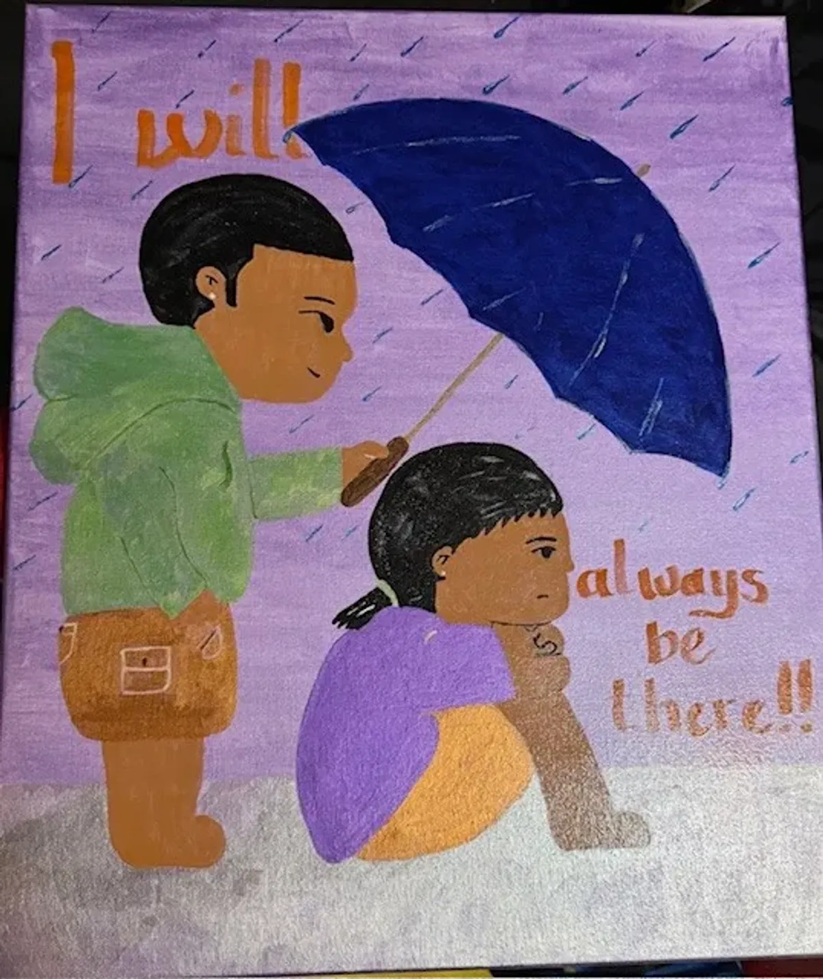 SupportEmpathyFriendshipRainUmbrellaHelpingCartoonKindnessBold / GraphicStorytelling / NarrativeInspirational / UpliftingPortrait / PeopleHope / Healing / ResilienceSpiritual / Symbolic