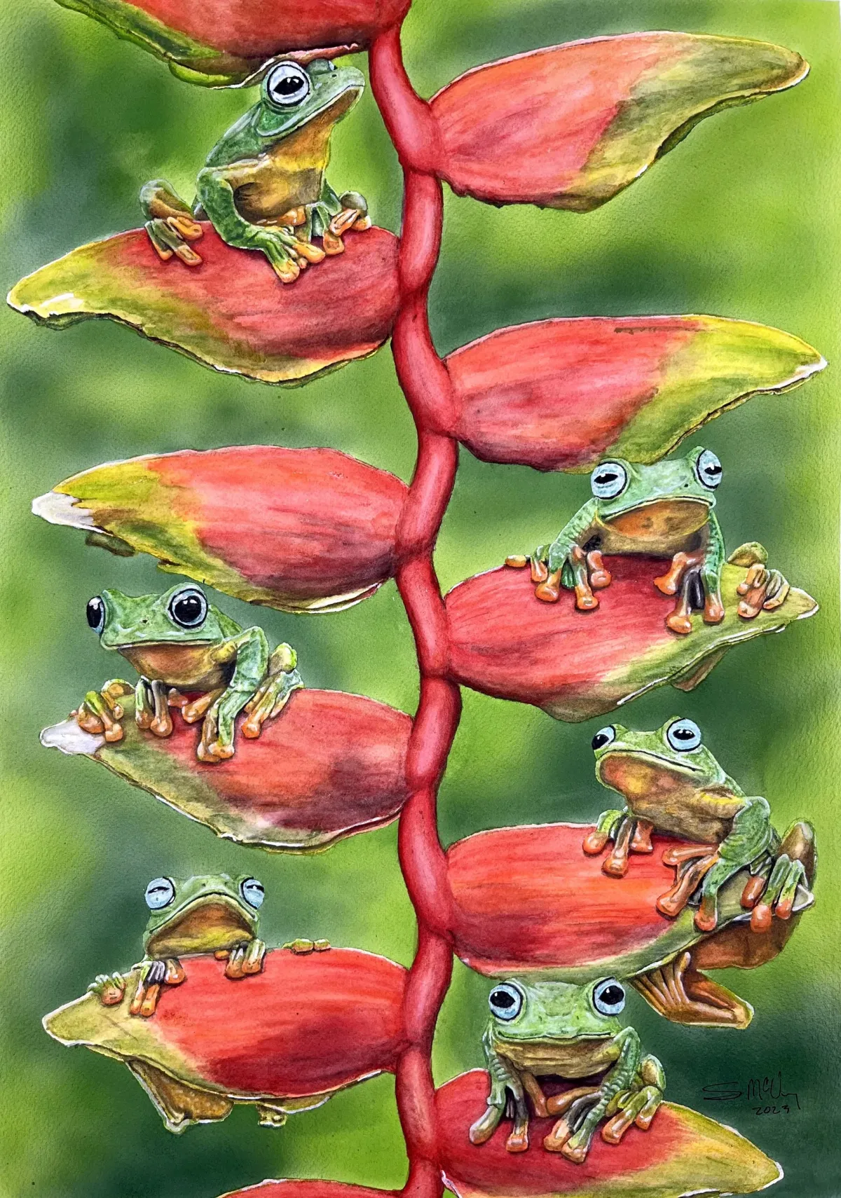 frogsHeliconiatropicalwildlifenaturewatercoloramphibianRealismLight / SereneLandscape / NatureAnimals / Wildlife