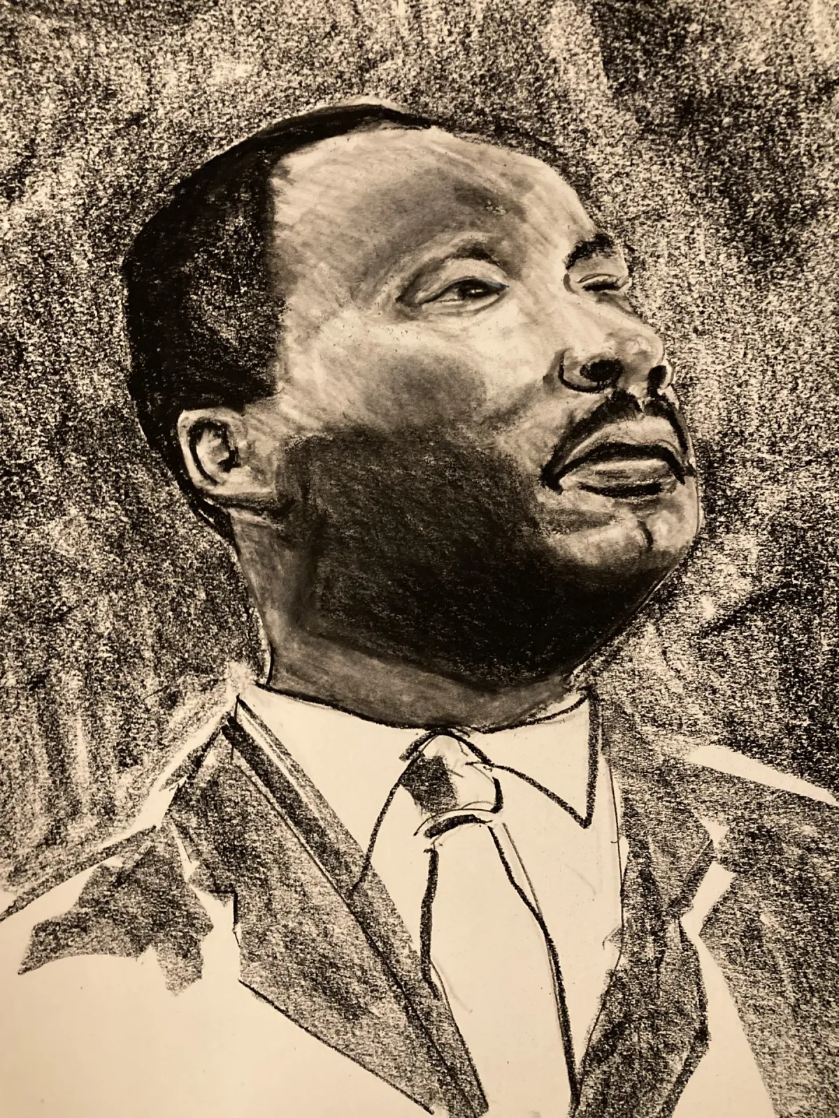 Martin Luther King Jr.portraitcharcoal drawingcivil rightsblack and whiteexpressivehistorical figureRealismExpressionism / EmotionalBold / GraphicStorytelling / NarrativeInspirational / UpliftingPortrait / PeopleSpiritual / SymbolicHistorical / CulturalHope / Healing / Resilience