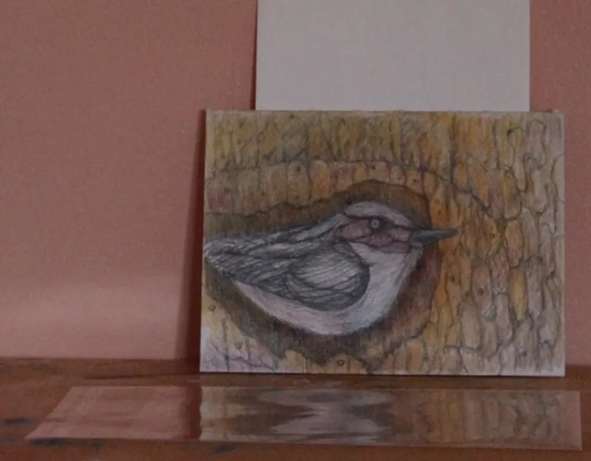 birdnuthatchtreeanimaldrawingcolored pencilwildlifeRealismStorytelling / NarrativeTherapeutic / ReflectiveLandscape / NatureAnimals / Wildlife