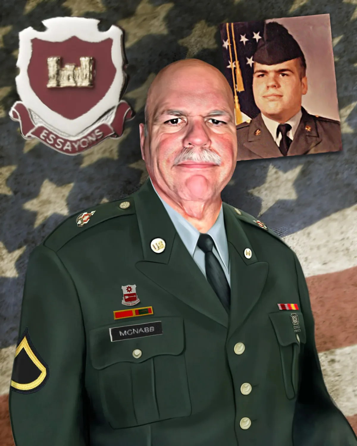 Military portraitVeteranArmy uniformAmerican flagMilitary insigniaServiceSoldierRealismStorytelling / NarrativeInspirational / UpliftingPatriotic / Military / FreedomVeteran Story / ServicePortrait / PeopleHistorical / Cultural