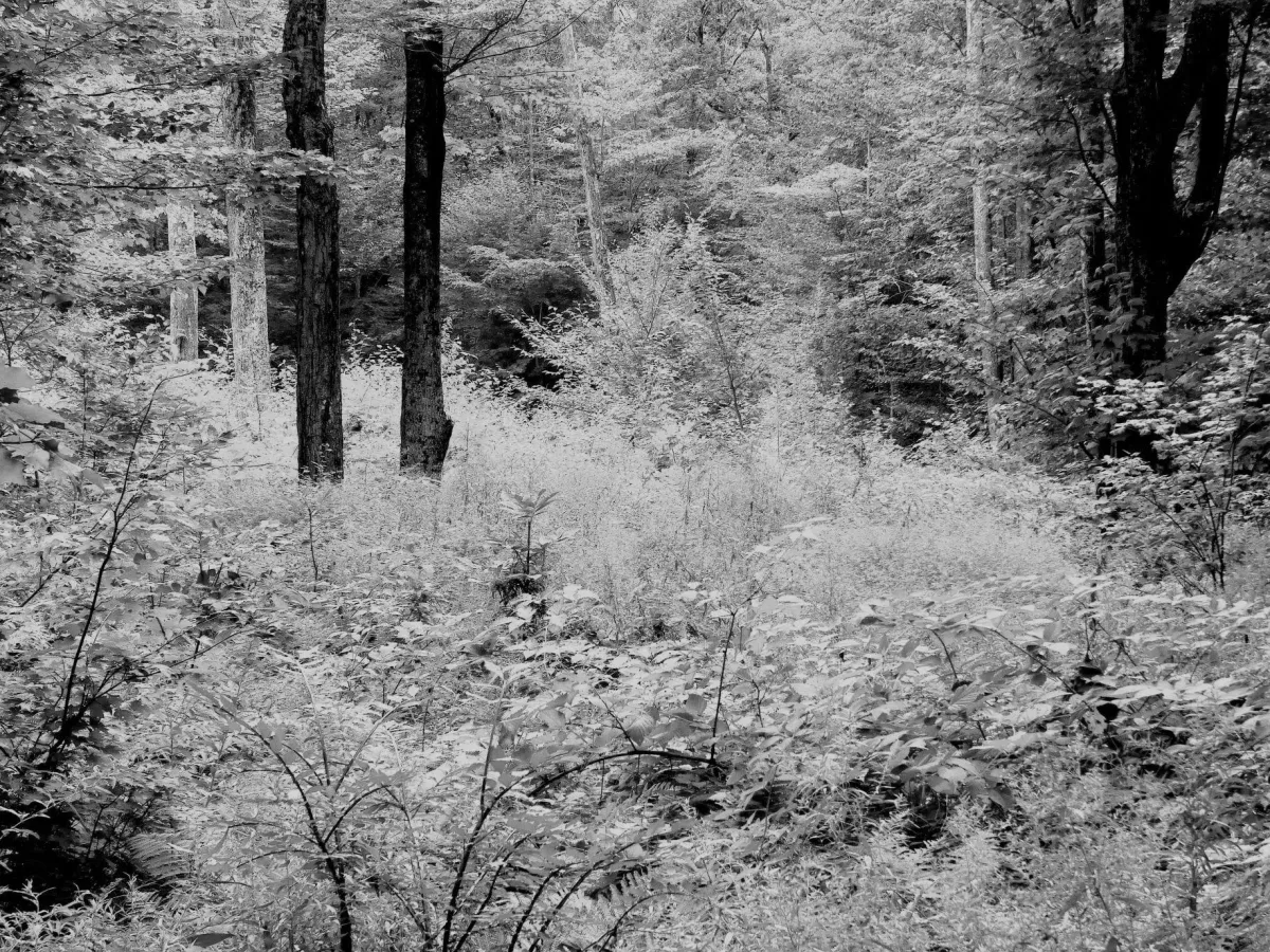 forestmonochrometreesfoliagenaturewoodsblack and whiteRealismDark / DramaticTherapeutic / ReflectiveLandscape / Nature
