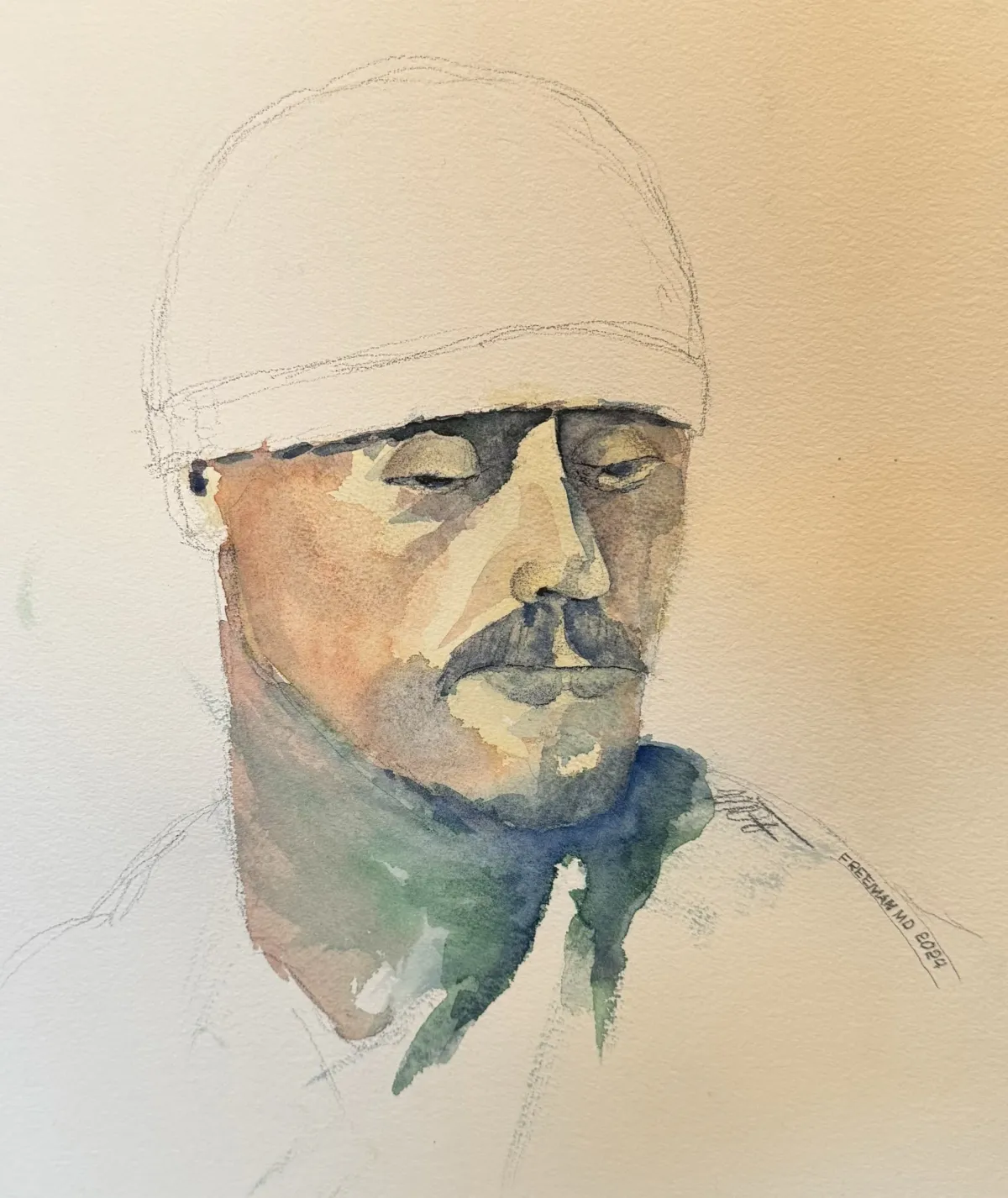 watercolorportraitmancontemplativesketchmuralbandanaRealismExpressionism / EmotionalContemporary / ModernLight / SereneStorytelling / NarrativePortrait / PeopleSpiritual / Symbolic