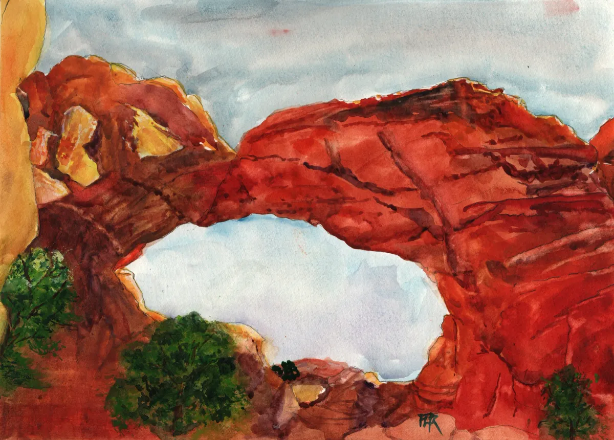 watercolorlandscaperock archdesertnatural formationred rocksnatureRealismLight / SereneLandscape / Nature