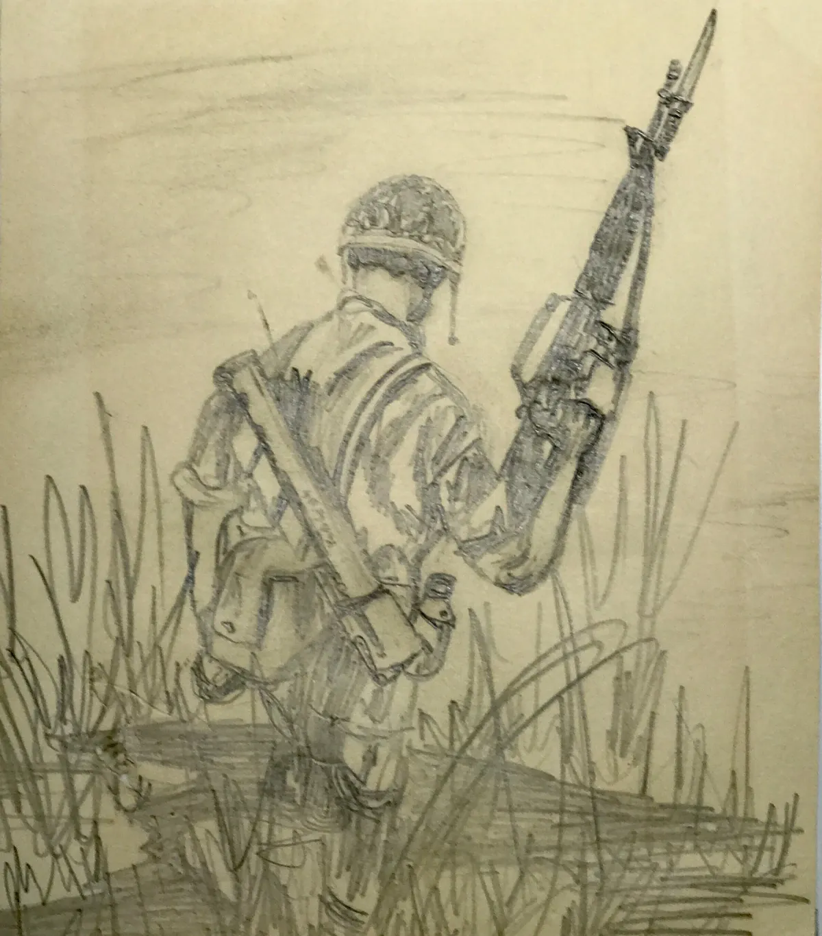 soldiermilitarypencil drawingsketchwarfarejunglerifleRealismStorytelling / NarrativeDark / DramaticExpressionism / EmotionalPatriotic / Military / FreedomPortrait / PeopleConflict / SacrificeHistorical / Cultural
