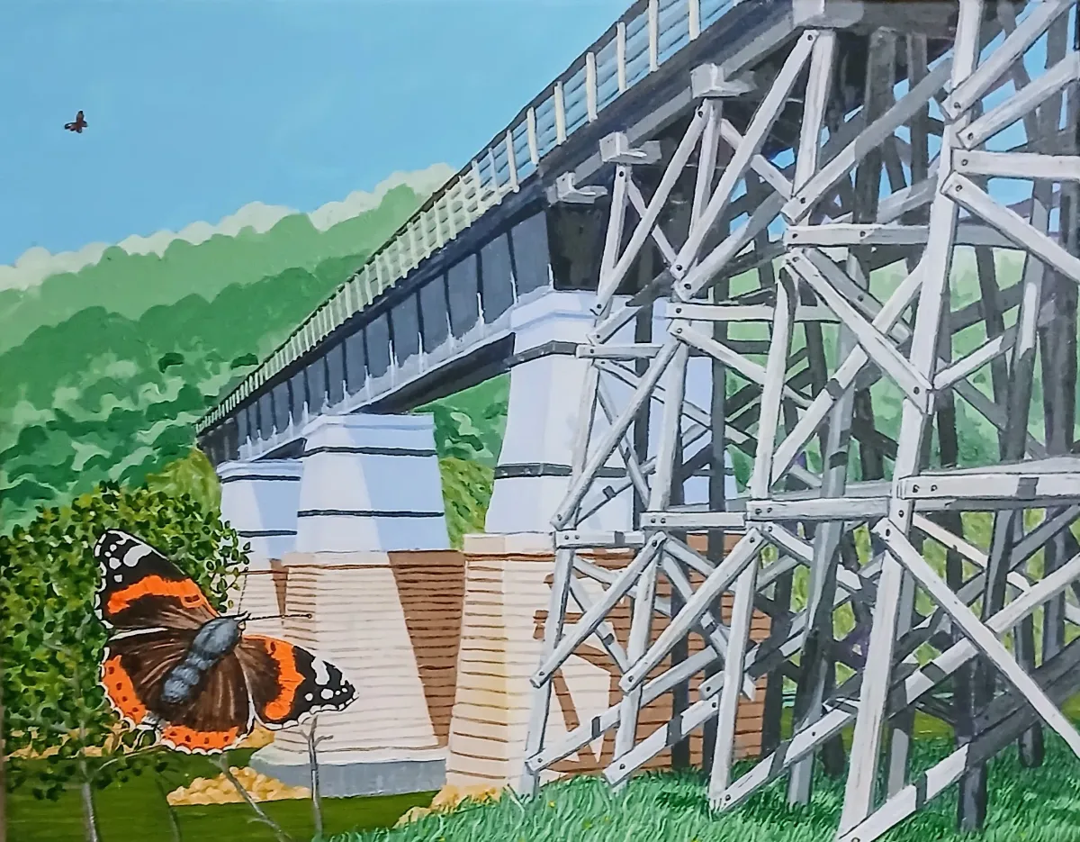 bridgeviaductbutterflylandscapenaturerailwaygreen hillsRealismLight / SereneStorytelling / NarrativeLandscape / NatureAnimals / WildlifeCity / Architecture