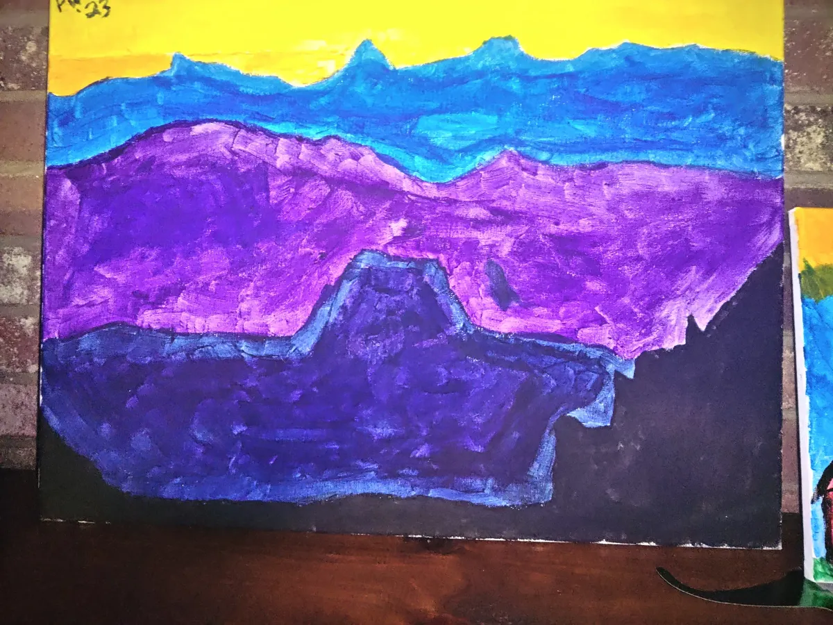 Abstract landscapeMountainsVibrant colorsExpressive artPurpleBlueYellowAbstractExpressionism / EmotionalBold / GraphicLandscape / Nature