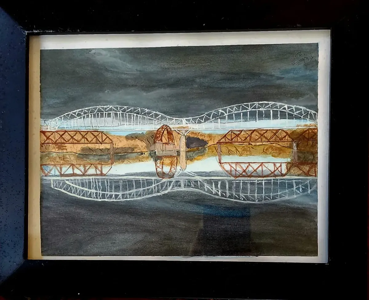 bridgewatercolorreflectionriverovercastlandscapearchitectureRealismDark / DramaticStorytelling / NarrativeLandscape / NatureCity / Architecture
