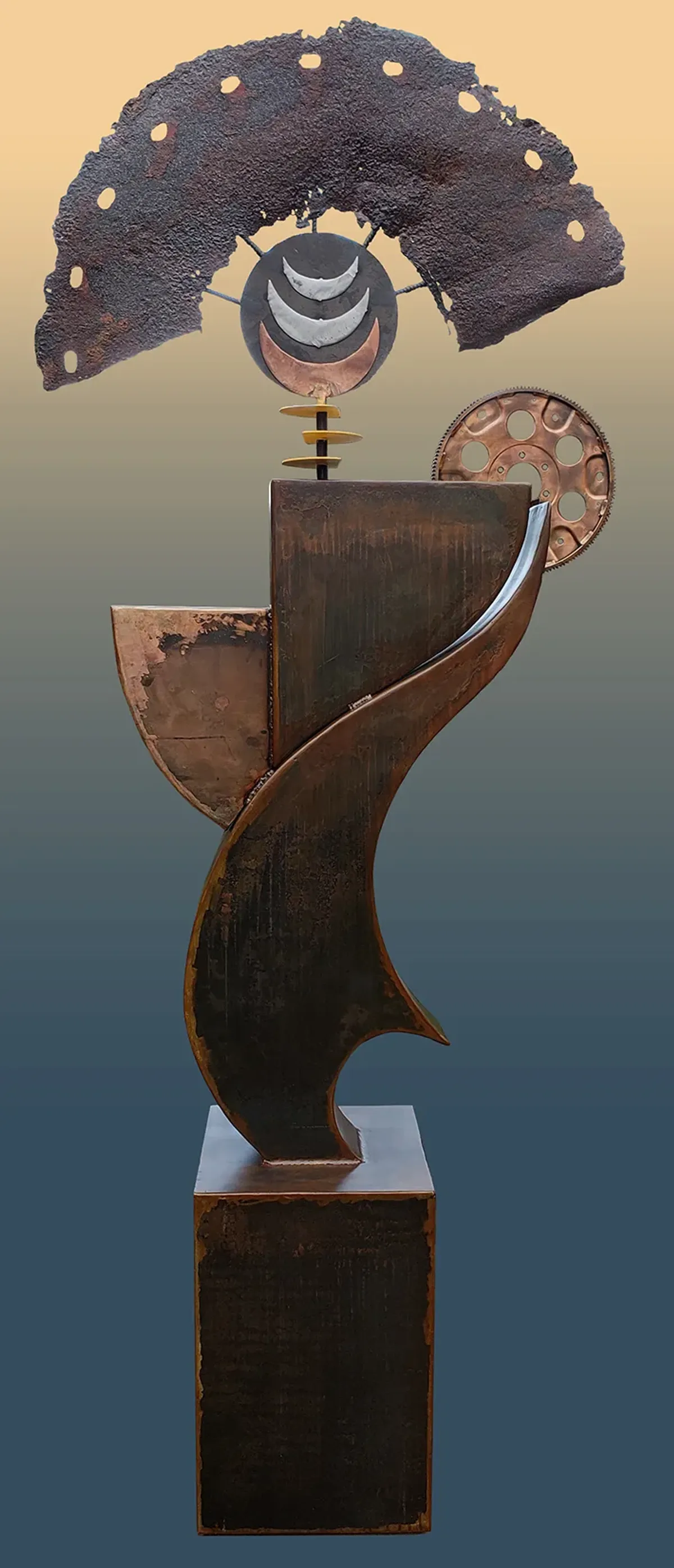 sculptureabstractmetalindustrialrustcontemporarymixed mediaAbstractContemporary / ModernBold / GraphicDark / DramaticAbstract / ConceptualStill Life / ObjectsSpiritual / Symbolic