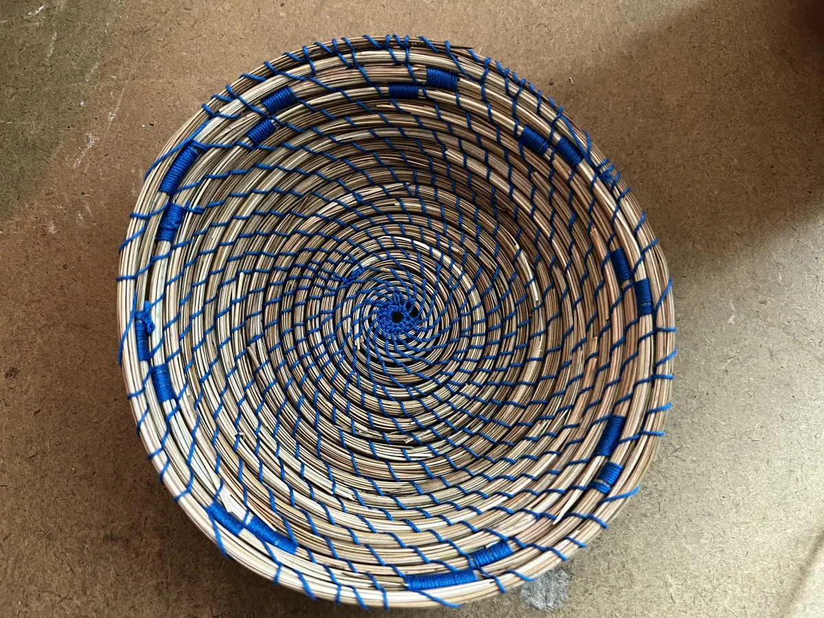 woven basketcraftspiralblue threadnatural fiberstexturehandmadeRealismBold / GraphicStorytelling / NarrativeStill Life / ObjectsHistorical / Cultural