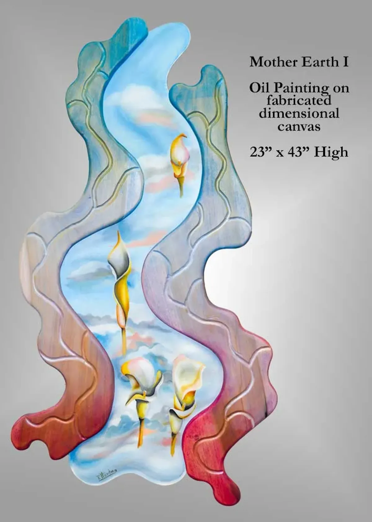 Dimensional artOil paintingCalla liliesMother EarthOrganic formsSky sceneContemporary artContemporary / ModernLight / SereneInspirational / UpliftingLandscape / NatureSpiritual / SymbolicAbstract / Conceptual